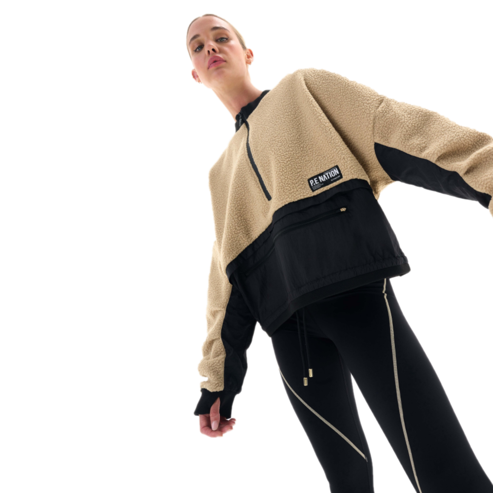 Contrast colour blocking makes it a true P.E Nation piece, with unrivalled attention to detail – think ribbed cuffs with thumb hole, zipper on lower waist panel, drawcord through hem and P.E Nation woven logo patch.