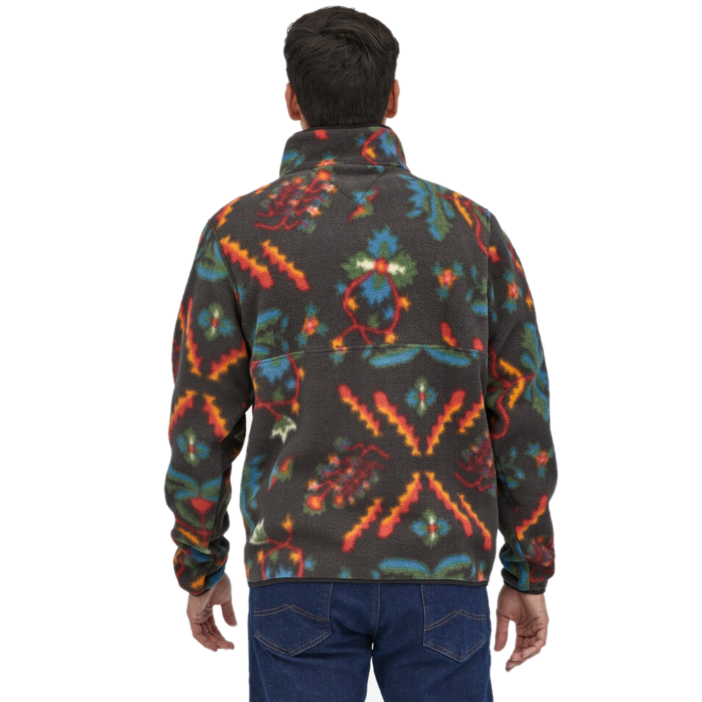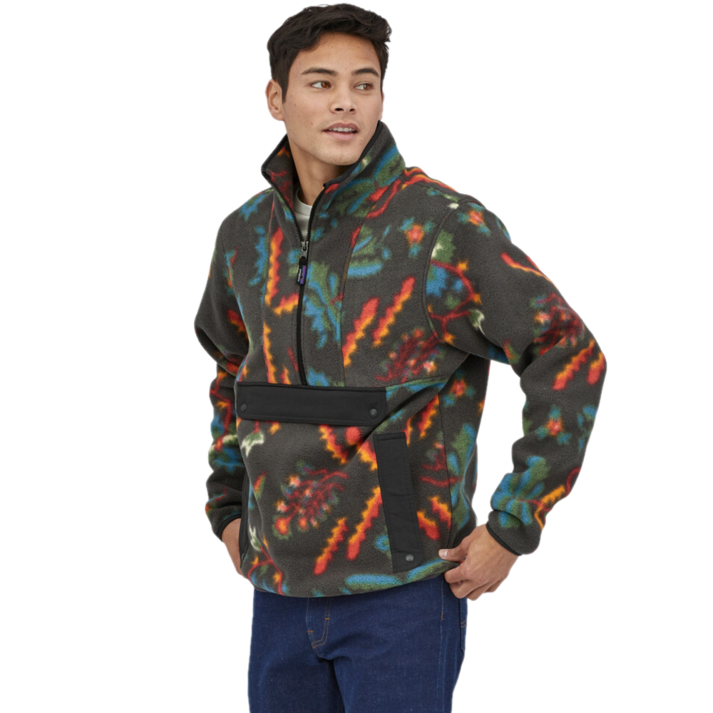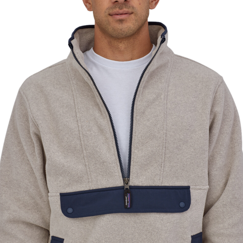 This warm fleece anorak is made with scraps of ultracomfortable, lightweight 100% recycled polyester Synchilla® fleece. Its heritage-inspired design offers a roomier cut than Patagonia’s other fleece styles; because it’s sized on Patagonia’s men’s sizing block, choose one size smaller than usual if you prefer a trimmer fit. Fair Trade Certified™ sewn.